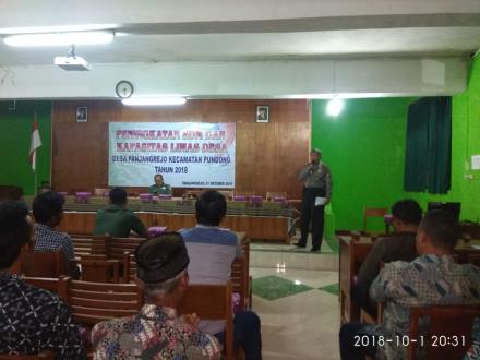Dalam acara tersebut di hadiri oleh 56 personil linmas dari 16 Dusun yang berada di pemerintahan Desa Panjangrejo, pertemuan itu juga di hadiri oleh babinmas dan babinkamtibmas desa panjangrejo. Turut hadir dan menjadi narasumber Bapak kapten Invantri suhardi selaku danramil Kecamatan Pundong dan bapak AKP. Haryanto, SH selaku Kapolsek Kecamatan Pundong. Acara tersebut di selenggarakan oleh bapak Kasi Pemerintahan Desa Panjangrejo.