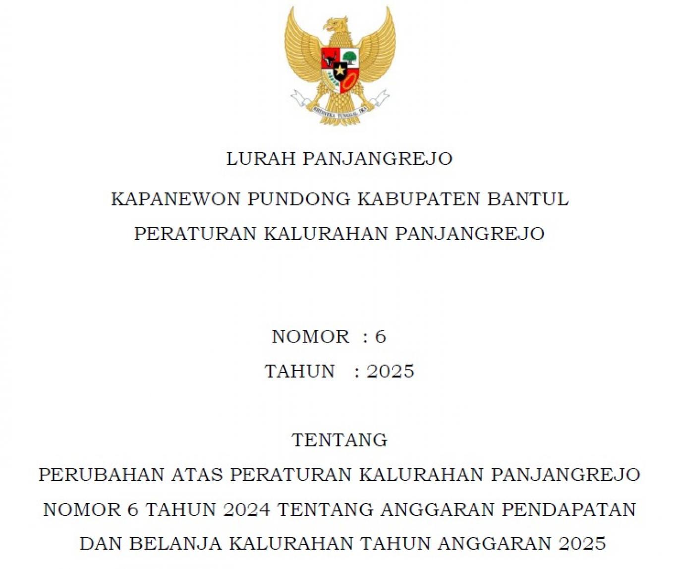 Peraturan Kalurahan Panjangrejo Nomor 6 Tahun 2025