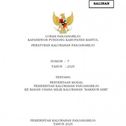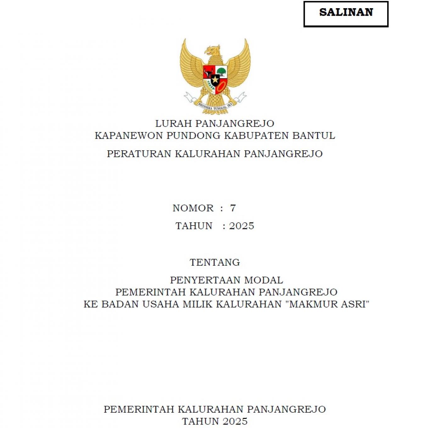 Peraturan Kalurahan Panjangrejo Nomor 7 Tahun 2025