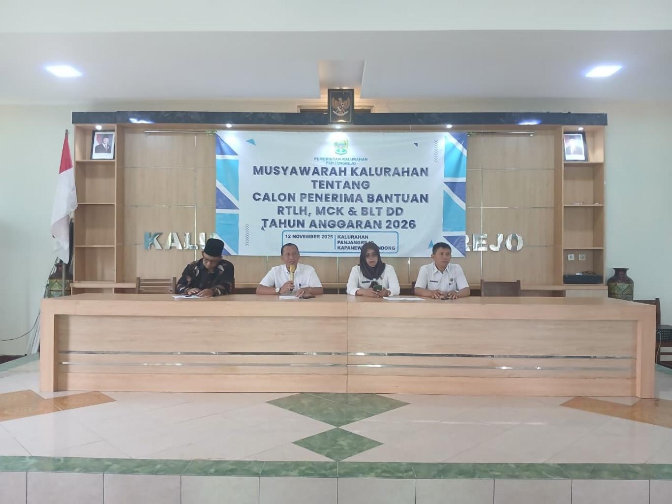 Pada hari rabu 12 november 2025, bertempat di Aula Kalurahan Panjangrejo, Kapanewon Pundong, Kabupaten Bantul, telah diselenggarakan Musyawarah Kalurahan (Muskal) dalam rangka penetapan calon penerima bantuan Rumah Tidak Layak Huni (RTLH), pembangunan MCK, dan Bantuan Langsung Tunai Dana Desa (BLT DD) Tahun Anggaran 2026.