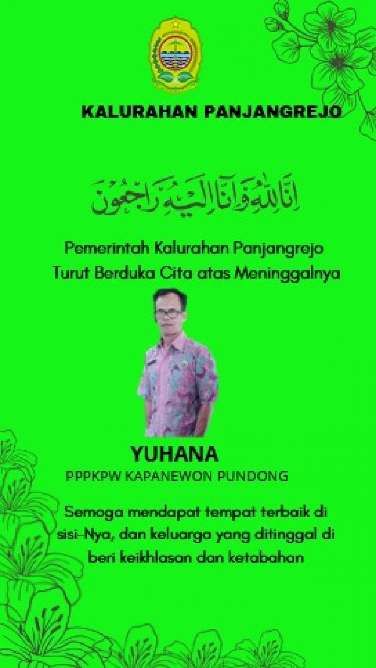 Inna lillahi wa inna ilaihi raji'un. Segenap Perangkat Kalurahan Panjangrejo dan Jajarannya. Turut berduka atas meninggalnya (Almarhum YUHANA ) Staff pelayanan PPKPW Kapanewon Pundong, Semoga Allah SWT mengampuni segala dosanya dalam keadaan husnul khotimah dan memberikan Jannatul Firdaus. Amin ya Rabbal alamin.