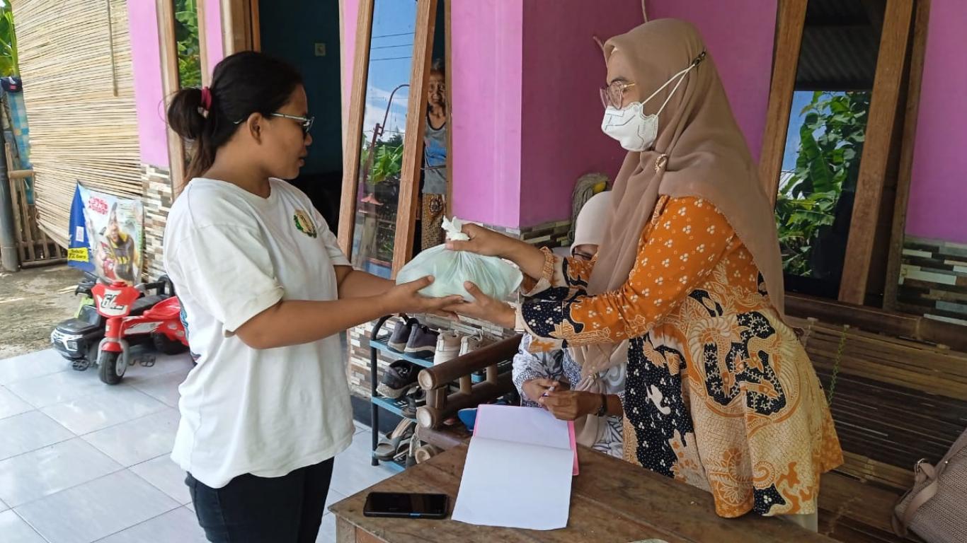 Sebagai bentuk dukungan pemenuhan gizi protein hewani, pada kegiatan ini juga dilakukan pemberian telur bebek kepada keluarga balita stunting. Telur bebek diberikan karena memiliki kandungan protein, lemak sehat, serta mikronutrien yang baik untuk mendukung pertumbuhan anak. Paket telur diserahkan langsung oleh tenaga kesehatan dan kader posyandu kepada masing-masing keluarga penerima.