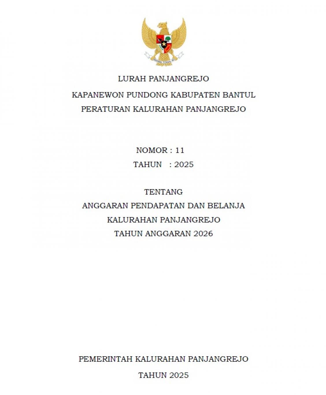 Peraturan Kalurahan Panjangrejo No 11 Tahun 2025