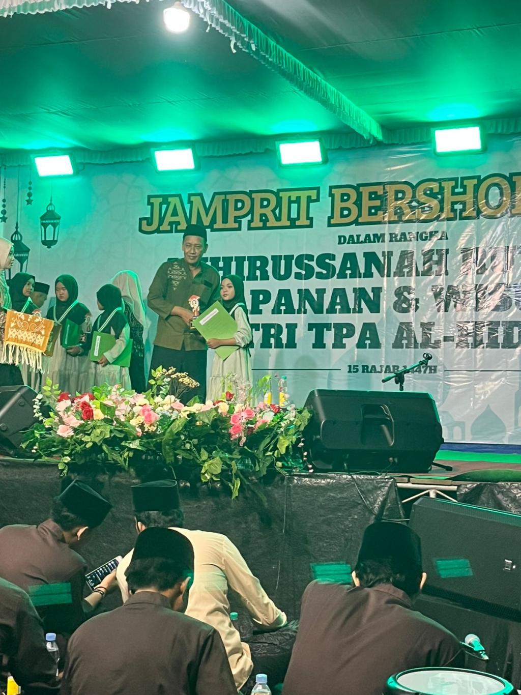 Rangkaian acara Jamprit Bersholawat diisi dengan lantunan sholawat kepada Nabi Muhammad SAW yang menggema dengan penuh kekhusyukan, menambah suasana sejuk dan damai di hati para hadirin. Puncak acara ditandai dengan prosesi wisuda santri TPA Al-Hidayah, yang menjadi momen membanggakan bagi para santri, orang tua, serta para ustaz dan ustazah yang telah membimbing dengan penuh kesabaran dan keikhlasan.