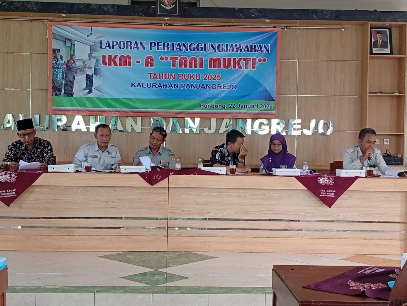 Kegiatan dibuka dengan sambutan dari pengurus LKM-A Tani Mukti dan Lurah Panjangrejo, dilanjutkan dengan penyampaian laporan pertanggungjawaban yang mencakup kegiatan, pengelolaan keuangan, serta capaian dan kendala yang dihadapi selama periode berjalan. Penyampaian laporan berlangsung dengan tertib dan terbuka, disertai sesi diskusi serta tanya jawab dari para anggota dan tamu undangan.