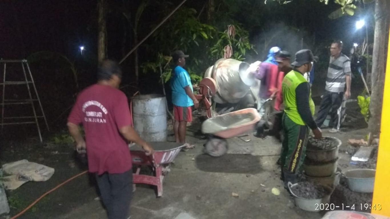 Kegiatan malam oleh warga Gedong Ganjuran yang diadakan pada malam minggu 4 Januari 2020 mengadakan cor blok di halaman sekitar Gedong Ganjuran yang mana kegiatan ini dilaksanakan untuk mengurangi air yang menggenang karena jalan yang di hadapi lebih tinggi maka perlu ada penambahan halaman agar air tidak menggenang.
